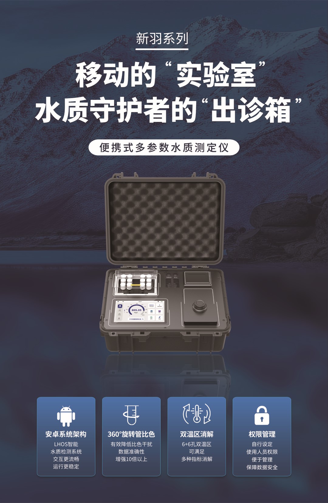水质检测是生态环境监测的一项重要工作,其中便携式水质测定仪在生态环境监测中扮演着关键角色。为了对户外水质检测提供了快速、准确和实时的数据支持,我司推出了新羽系列LH-C600便携式多参数水质测定仪,凭借其卓越的性能和多功能性,该仪器在水质检测领域取得了领先地位,它就像一台移动的“实验室”,为水质守护者提供了便捷的“出诊箱”。
