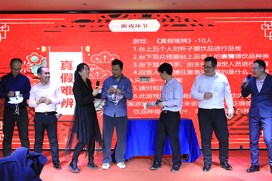 除了精彩的节目表演,互动游戏和幸运抽奖环节也穿插在节目表演中,让大家更加投入到年会的气氛中。员工们踊跃地参与游戏互动,欢笑声此起彼伏。幸运抽奖更是让现场气氛一度达到高潮,幸运儿们喜气洋洋地拿着奖品合影留念。节目表演结束后,晚宴环节正式开始,菜品丰富多样,色香味俱佳,大家品尝着美食,交杯换盏,畅谈着工作和生活,笑容洋溢在每个人的脸上。