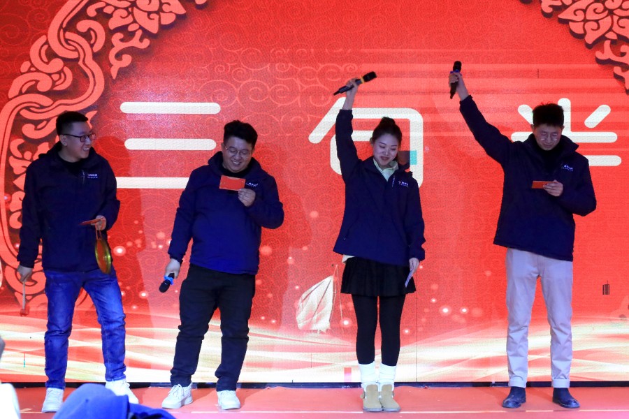 下午15点30分,年会节目表演正式开始。舞台上的灯光熠熠生辉,来自各个部门的同事们用他们精彩的演出将现场气氛推向高潮。歌舞、小品、相声、朗诵等节目形式多样,精彩纷呈。大家全神贯注地欣赏着表演,不时发出赞叹和欢呼声,现场气氛热烈而欢快。