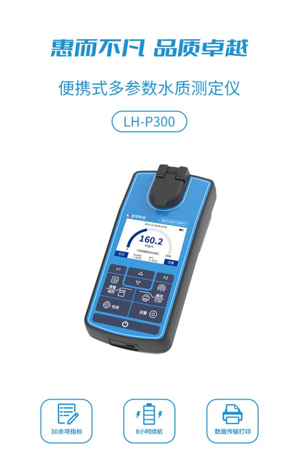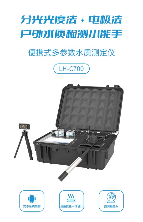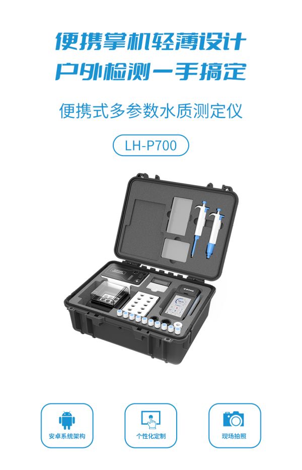 仪器采用手持式主机设计,可单手握持进行水质检测工作,采用安卓架构打造LHOS操作系统,支持拍照、截图、4G、WIFI、卫星定位、中文输入、数据分析等多项功能,可检测硫化物、COD、氨氮、总磷、总氮等38项水质指标,是野外现场执法的得力助手。