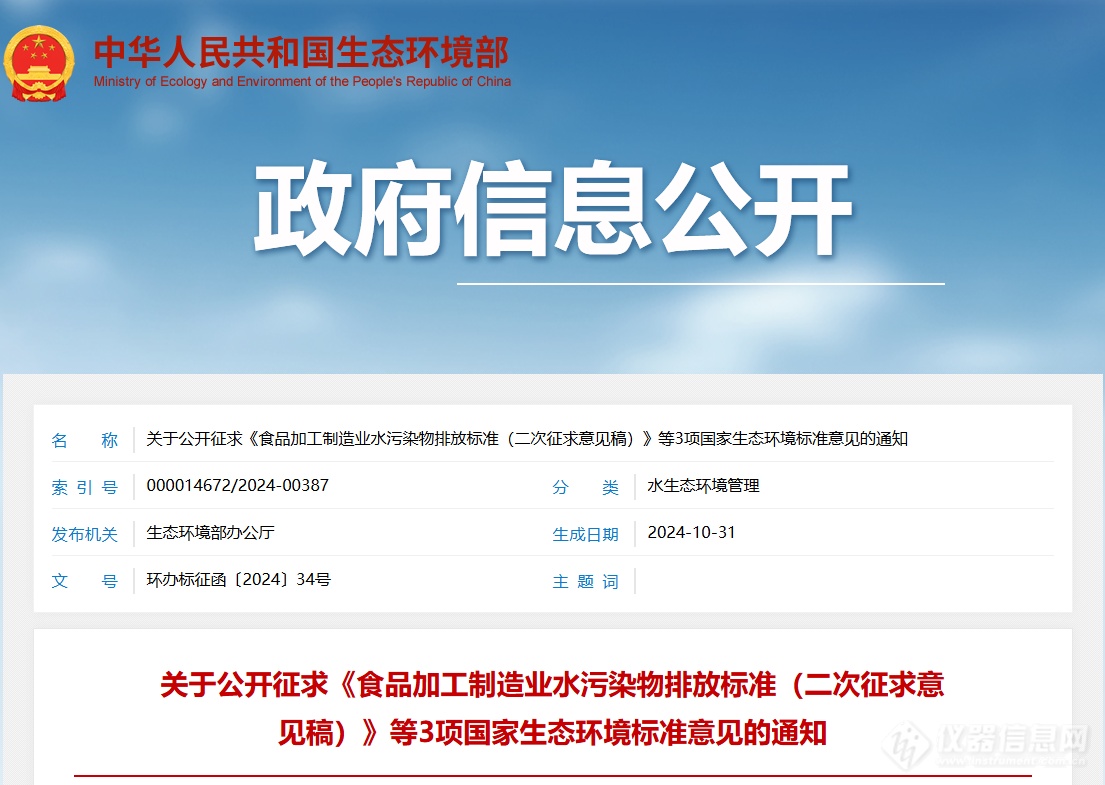 《食品加工制造业水污染物排放标准(二次征求意见稿)》