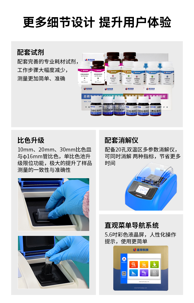 2、标配消解仪:标配20孔双温区多参数消解仪(可选配),可同时消解两种指标不同温度水样,并可满足用户大批次样品检测的需求,节省时间;