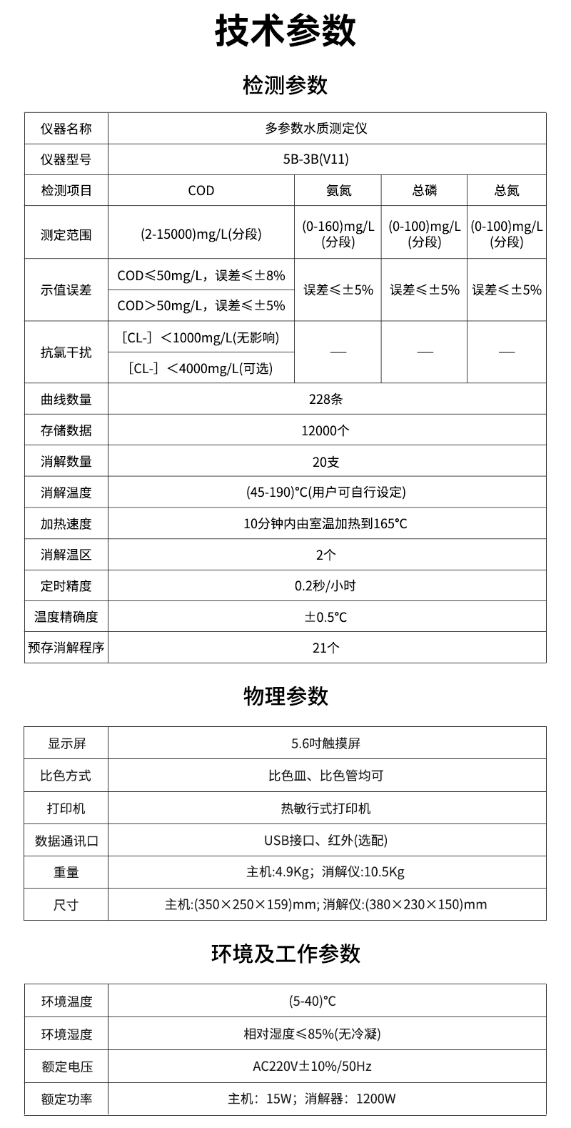 1、五十余项参数指标:直接测定化学需氧量(COD)、氨氮、总磷、总氮、悬浮物、色度(铂钴色系)、浊度、重金属、有机污染物和无机污染物等多项指标,浓度直读;