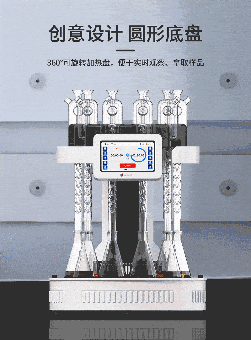 3、旋转底盘:加热盘采用左右可旋转360°设计,便于用户实时观察样品消解状态,快速添加耗材、拿取样品;