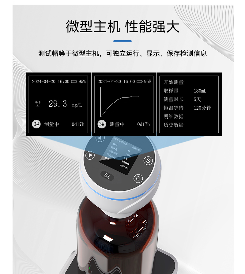 2、量程0-4000mg/L,支持8种量程取样选择,检测浓度直读,无需换算直接显示BOD值,硬件升级低量程测值更准;