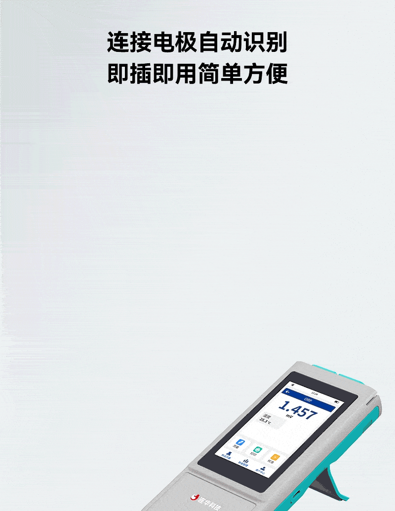 3、采用全数字电极,连接电极自动智能识别,支持自动温度补偿,有效避免环境温度影响,提高测值精准度和稳定性;