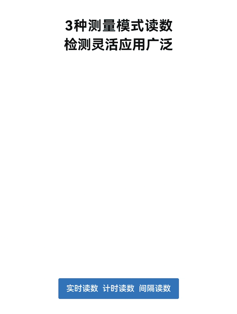 4、内置实时读数、计时读数、间隔读数3种测量模式读数,可根据检测场景及需求灵活选择;