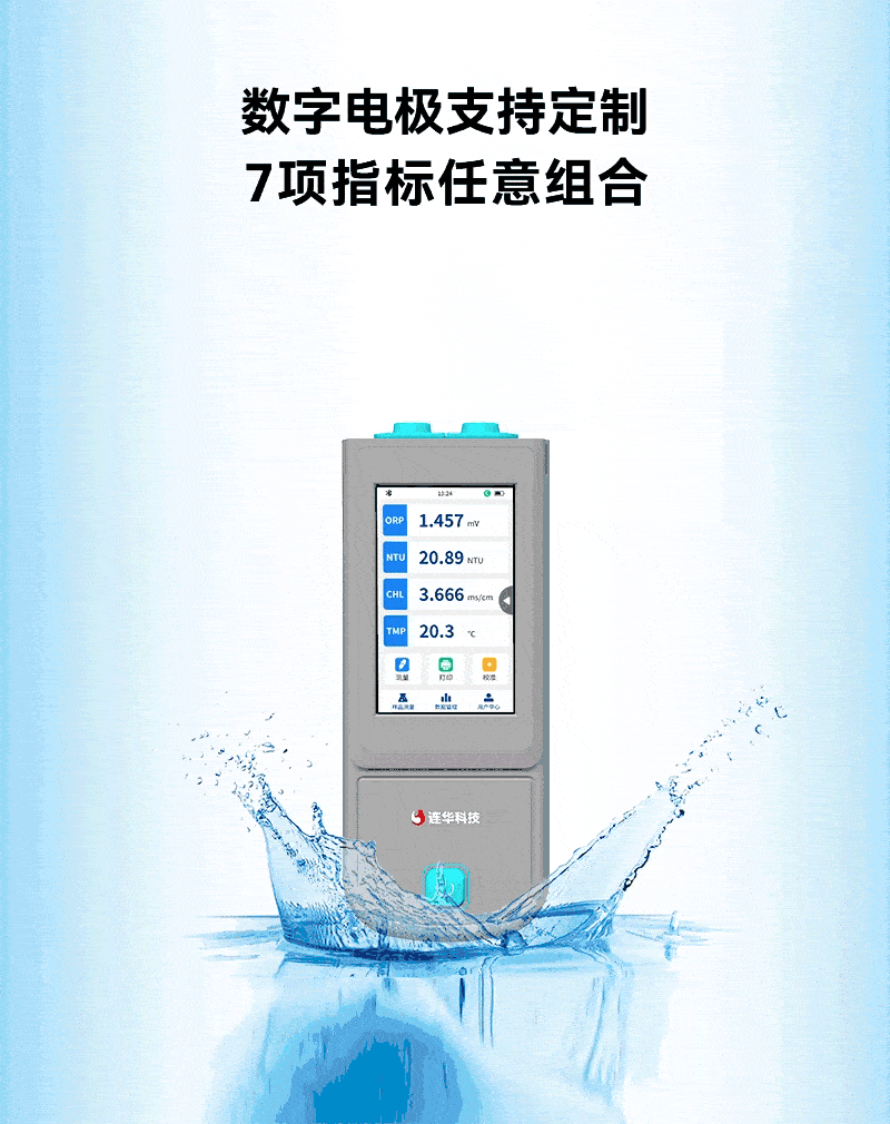 1、手持式迷你主机,支持pH、溶解氧、电导率、ORP、浊度、叶绿素、蓝绿藻7项指标快速检测,满足各领域水质检测需求;