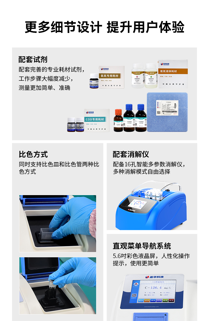 2、标配消解仪:标配16孔多参数消解仪(可选配),满足用户大批次样品检测的需求,节省时间;