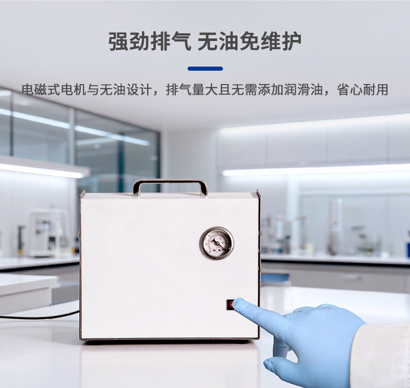 8、真空泵采用电磁式电机,活塞直线往复运动产生压缩气体,排气量大;